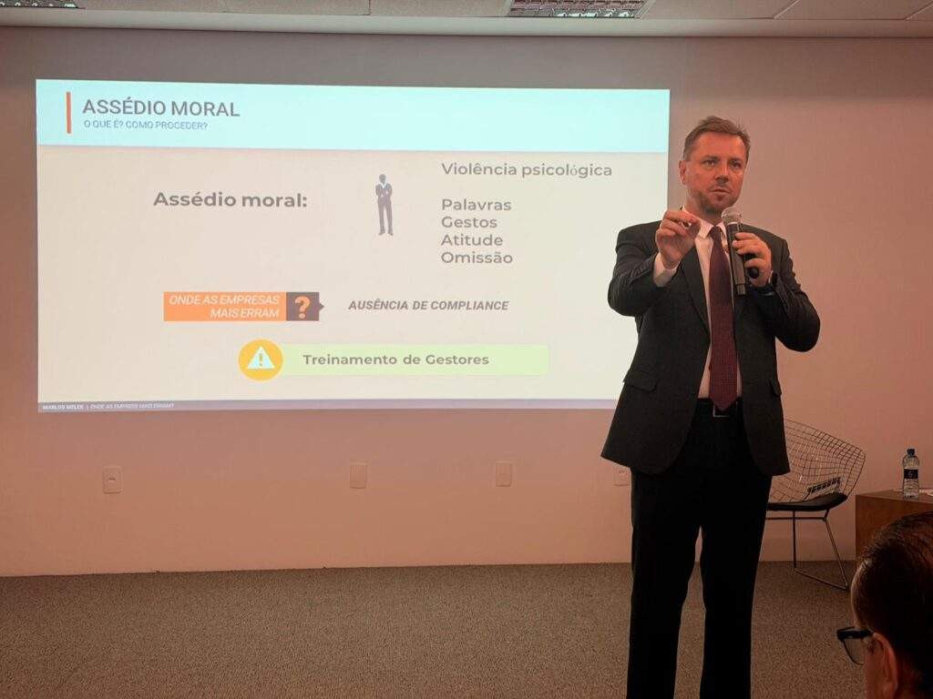 Ele também advertiu sobre práticas que configuram assédio moral, como a exposição pública de rankings e metas. “Cobrar desempenho não é problema; o problema é humilhar”, disse. No campo do assédio sexual, reforçou que a tipificação exige hierarquia e chantagem. “O erro mais comum é a omissão. As empresas precisam ter canais de denúncia e compliance ativo”.