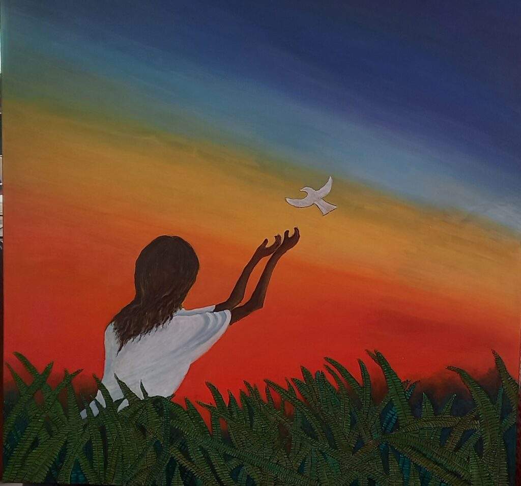 Lilia Lubian explorou a técnica de acrílica sobre tela e colagens em “A Mulher, o Escorpião e a Magia da Natureza”, em que duas mulheres se encontram: uma deusa do Antigo Egito e uma artista nascida à beira-mar de Santa Catarina, unidas por um signo de poder e mistério — o escorpião. Serket, a deusa escorpiana, regia os domínios da cura e da magia. Vera, uma das deusas da arte catarinense, filha do mesmo signo, trilha caminhos parecidos, revelando um mundo onde o real se curva ao simbólico.