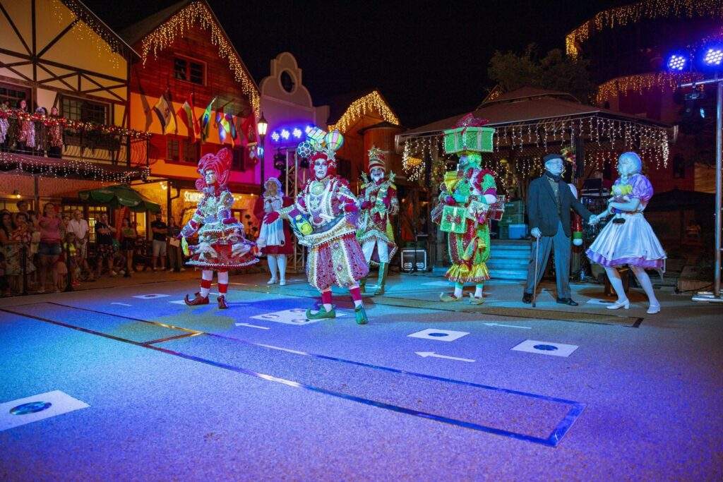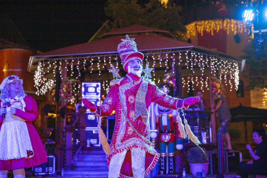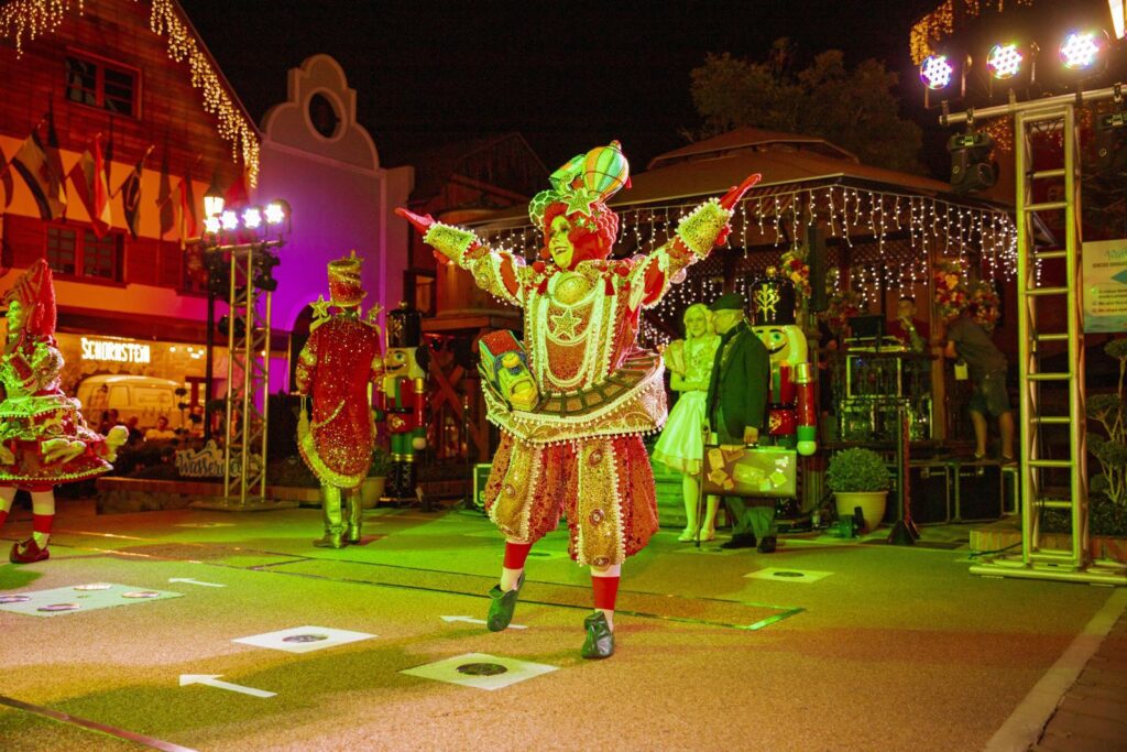 O grande momento da noite será a chegada do Bom Velhinho. Fugindo do convencional, o Papai Noel do espetáculo é inspirado na tradição da Polônia, trazendo um toque europeu e encantador, em perfeita sintonia com a arquitetura e o clima do Alles Park.