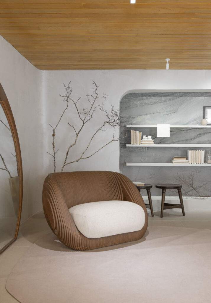 “O mobiliário orgânico, os materiais naturais e a presença viva das kokedamas flutuantes representam esse equilíbrio entre leveza e profundidade, entre céu e terra. São símbolos do que é invisível, mas essencial para que um sonho floresça”, finaliza.