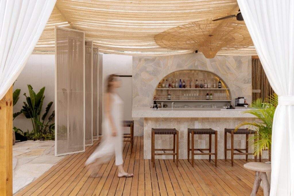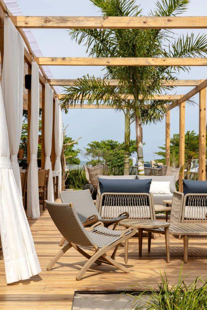 A experiência é marcada por um forte componente sensorial. O toque da madeira, o som do vento atravessando os tecidos e o jogo de luz e sombra criam uma atmosfera de conforto e acolhimento. A arquitetura propõe uma sofisticação silenciosa, na qual nenhum elemento é excessivo, mas todos são cuidadosamente pensados para gerar bem-estar.