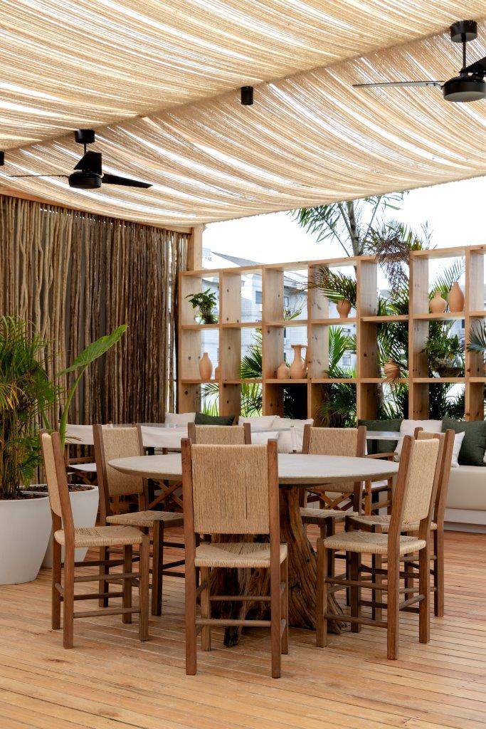 A arquiteta desenvolveu um espaço que articula arquitetura e gastronomia em uma narrativa sensorial, no qual cada elemento contribui para a construção de uma atmosfera acolhedora e envolvente. Com linguagem contemporânea e atemporal, o projeto se apoia no uso de materiais naturais, texturas orgânicas, luz filtrada e sombras desenhadas. Uma arquitetura que traduz um estilo de vida despretensioso, no qual o conforto e a experiência assumem protagonismo. Uma leitura sensível da experiência à beira-mar, inspirada no ritmo desacelerado e na paisagem natural de Florianópolis, cidade de origem da profissional.