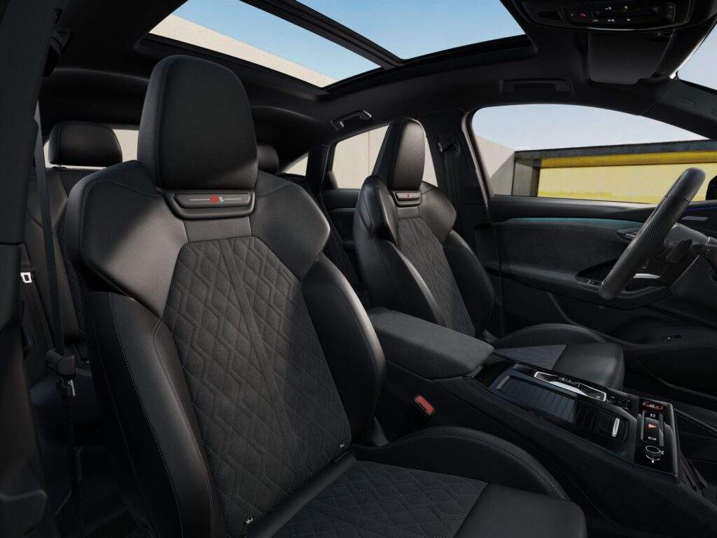 Entre os principais itens que já eram oferecidos, estão bancos dianteiros superesportivos, com ajustes elétricos e lombar, função massagem para os bancos dianteiros e memória para o motorista, em combinação Dinâmica e couro com inscrição “S”; volante esportivo em couro, multifuncional com shift-paddles, aquecimento e inscrição “S”; teto solar panorâmico; rodas de alumínio Audi Sport de 21 polegadas, com pneus 255/45 R21 (dianteiros) e 285/45 R21 (traseiros); controle de cruzeiro adaptativo, aviso de saída de faixa com assistente de emergência e sistema de frenagem autônoma (AEB); faróis Full LED Matrix com setas dinâmicas, apresentação de luzes, assinaturas digitais selecionáveis do DRL (via MMI) e lavador de farol; e simulação de som externo e-tron Sport.