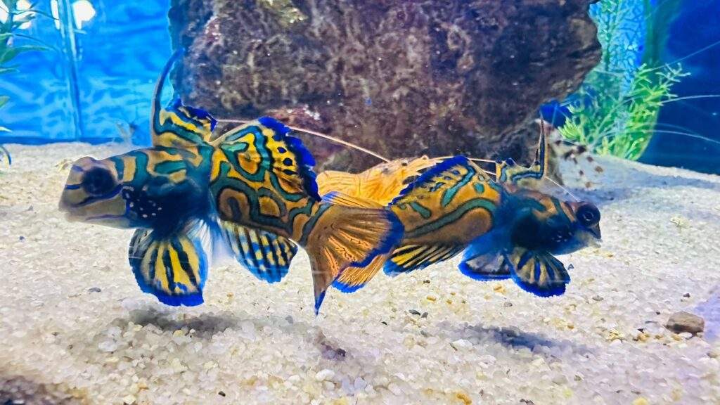 Entre os destaques está o peixe-mandarim, considerado um dos mais coloridos do mundo. De pequeno porte e hábitos discretos, apresenta tons de azul, verde, laranja e amarelo, produzidos por células chamadas cromatóforos, responsáveis pela reflexão da luz. A espécie também possui um mecanismo de defesa pouco conhecido: a pele libera uma substância tóxica que afasta predadores.