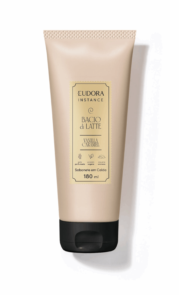 Este sabonete em calda possui uma textura leve, com espuma cremosa e fácil de enxaguar, que limpa a pele sem ressecar. Sua fórmula, além de deixar a pele macia e perfumada, é livre de petrolatos e enriquecida com glicerina vegetal e vitamina E , proporcionando um cuidado suave e eficaz.A linha conta com o Acorde Bacio di Latte: notas olfativas extraídas a partir da casquinha crocante com o clássico sabor Bacio di Latte, trazendo uma faceta gourmand inconfundível para ambas as fragrâncias.Eudora Instance Vanilla Caramel combina a amada Baunilha de Eudora Instance com caramelo e o delicioso acorde Bacio di Latte em uma fragrância oriental envolvente e marcante.