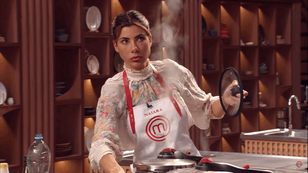 Na prova de eliminação, o desafio foi trabalhar com ingredientes fermentados, sob avaliação do convidado Leonardo Andrade, especialista da Companhia dos Fermentados. Diante de uma bancada repleta de conservas e insumos pouco familiares, Naiara recebeu do colega Guilherme a missão de trabalhar com mandioca fermentada como ingrediente principal. “Eu tô ferrada, Jesus. Não sei exatamente ainda o que vou fazer”, desabafou enquanto fazia o mercado. Mesmo sem ter experimentado previamente o ingrediente-chave, a designer náutica conseguiu entregar um prato coerente, com ossobuco, mandioca grelhada e um molho de sabor equilibrado.