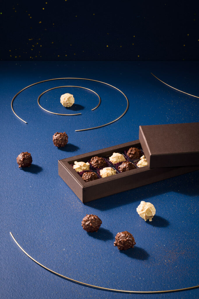 O resultado é uma caixa especial que reúne dois mundo: a Truffe du Jour Blanc encontra no Johnnie Walker Blue Label, de perfil mais suave e envolvente, um contraponto aveludado e profundo, em que as notas delicadas de leite e baunilha, somadas ao crocante de amêndoas, ganham intensidade com as nuances frutadas de damasco e frutas vermelhas presentes no whisky. Já a Truffe du Jour Noir se conecta ao Johnnie Walker Black Label, de personalidade marcante e notas frutadas de cacau, harmonizando com o whisky de caráter amadeirado e nuances de especiarias, canela, gengibre e maçã. O crocante de amêndoas confere textura e prolonga o prazer no paladar.
