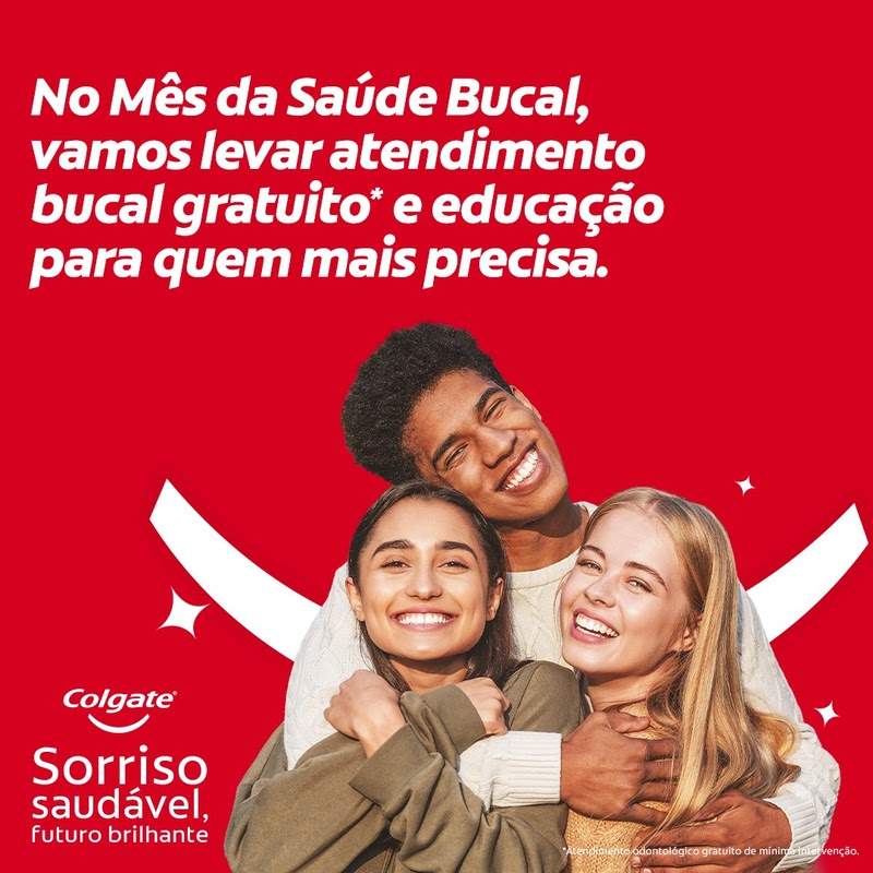 Para celebrar o Dia Nacional da Saúde Bucal (25/10), a Colgate transforma outubro inteiro em um mês dedicado ao sorriso.A marca promove o Mês da Saúde Bucal, com uma série de iniciativas da campanha Sorriso Saudável, Futuro Brilhante, que percorre o Brasil com ações de conscientização e acesso à saúde.