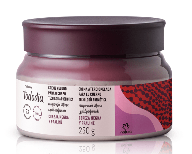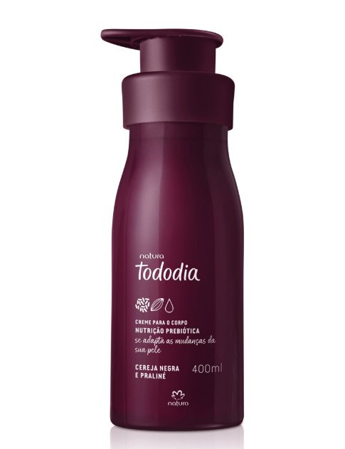Natura Tododia, marca #1 em creme para o corpo nos lares brasileiros*, anuncia a chegada da nova fragrância Cereja Negra e Praliné, uma combinação intensa, provocante e irresistivelmente sensorial que une a suculência da cereja negra aos acordes adocicados do praliné. O lançamento – já disponível em todo o Brasil – vem acompanhada do retorno da fragrância Tododia Cereja e Avelã, um sucesso entre as consumidoras.