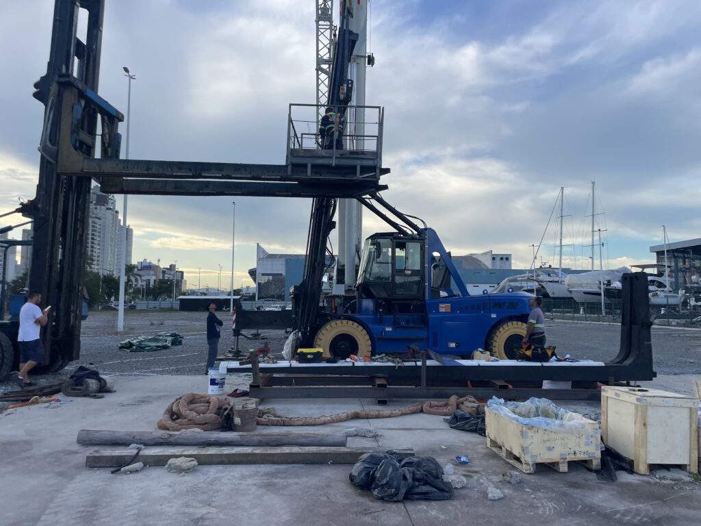 A aquisição do Fork Lift é fruto de um ano de pesquisas técnicas realizadas pela equipe da Marina Itajaí, que recentemente ampliou sua estrutura para 405 vagas secas e molhadas e buscava um modelo capaz de atender embarcações de lazer com diferentes portes e características. A fabricação foi feita pela chinesa Socna, que desenvolveu o equipamento sob encomenda com recursos inéditos no Brasil para esse tipo de operação.
