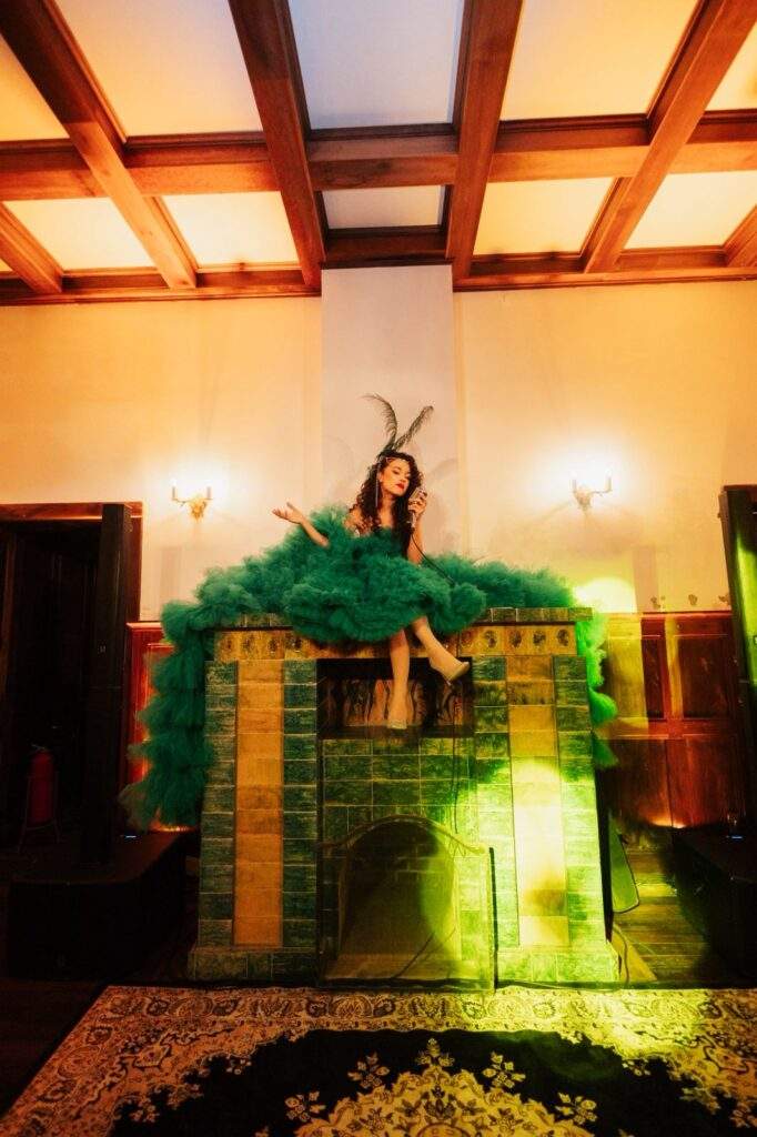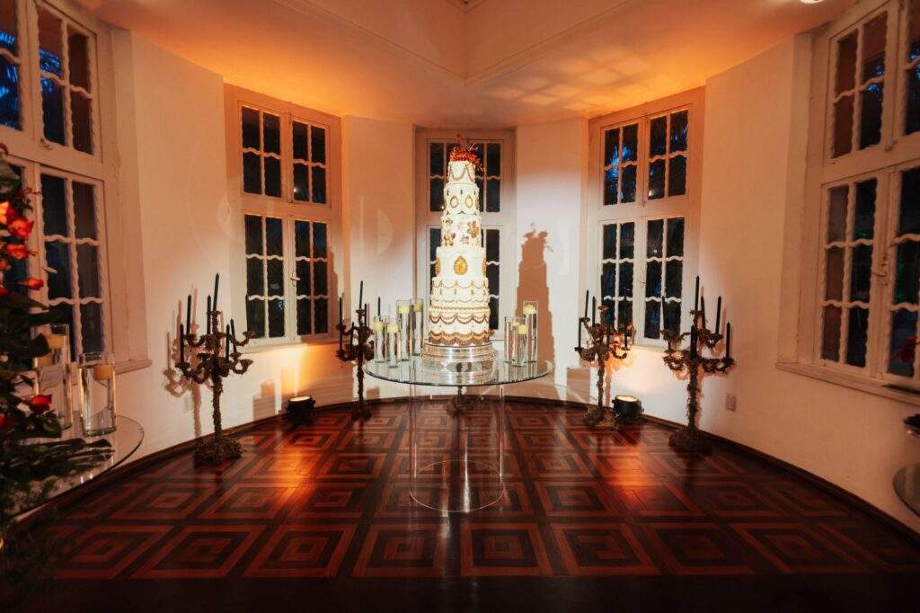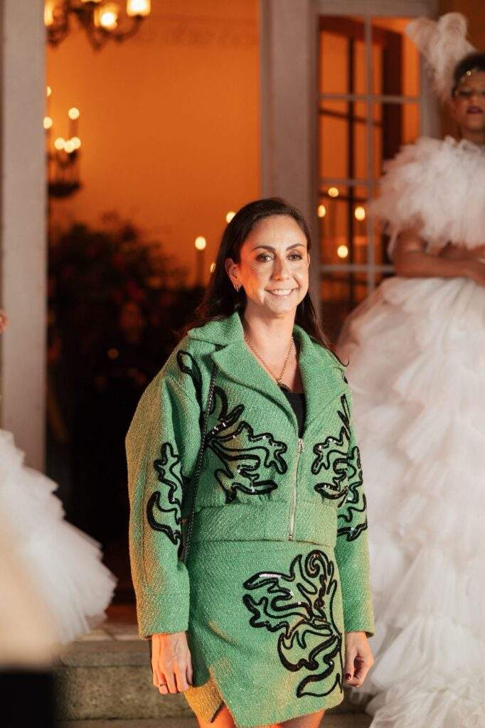 Um dos grandes destaques foi o imponente bolo de seis andares, inspirado nos sofisticados vintage cakes, elaborado por Tábata de Oliveira, da Bolico. Para completar a atmosfera mágica, os personagens da KL Produções enriqueceram os ambientes com sua arte inconfundível. O momento apoteótico veio com Deborah Goes, que emocionou a todos ao cantar sobre a icônica lareira (peça única no mundo) eternizando a noite com sua voz.