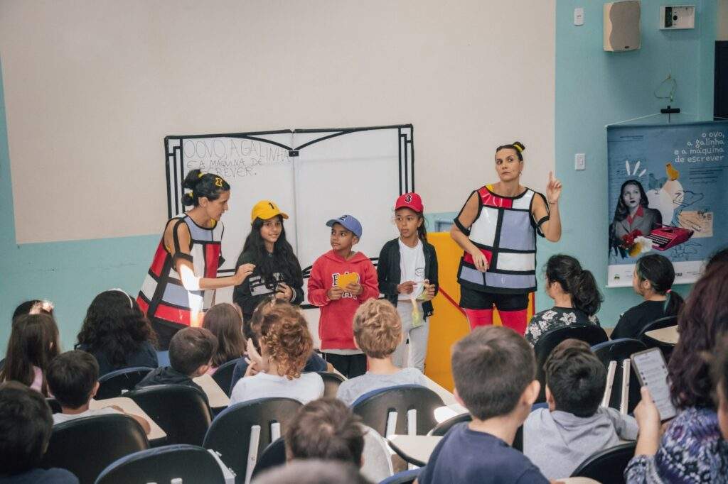 As cidades de Florianópolis e Santo Amaro da Imperatriz recebem, em abril, apresentações gratuitas do espetáculo infantil “O ovo, a galinha e a máquina de escrever”. Promovida pelo Coletivo Mar Cultural, a peça-homenagem é livremente inspirada na vida e obra da escritora Clarice Lispector e contemplará estudantes e professores de escolas públicas municipais. O encerramento da circulação será no dia 18 de abril (sábado), às 15h, com uma sessão aberta ao público no Sesc Prainha (Travessa Syriaco Atherino, 100 – Centro), em Florianópolis. Os ingressos serão distribuídos no local com uma hora de antecedência.
