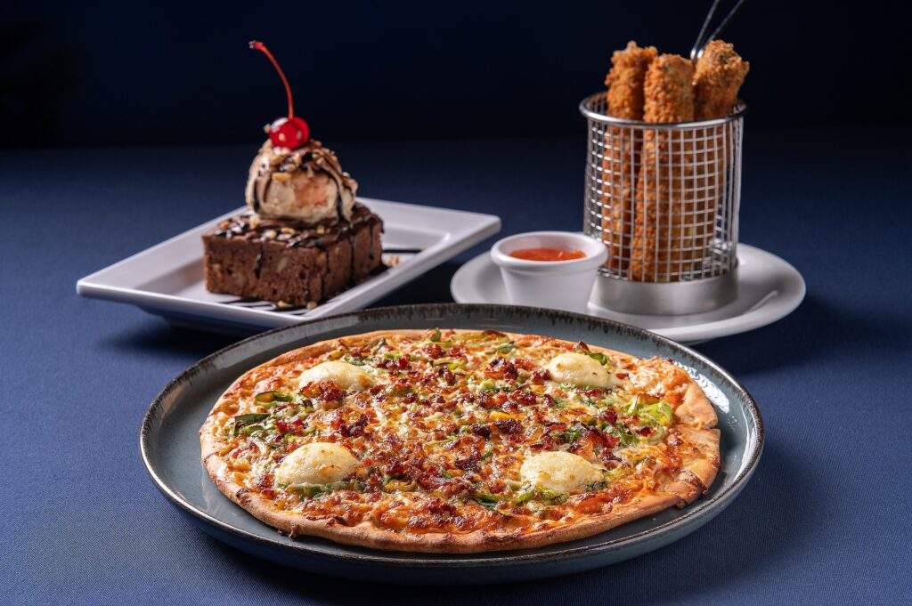 PIZZA BIS – Estados Unidos – Entrada: Provolone Empanado com Geleia de Pimenta, Principal: Pizza Montana (bacon, catupiry e molho texano) e Sobremesa: Brownie Cremoso com Nutella, Sorvete de Creme e Crocantes;