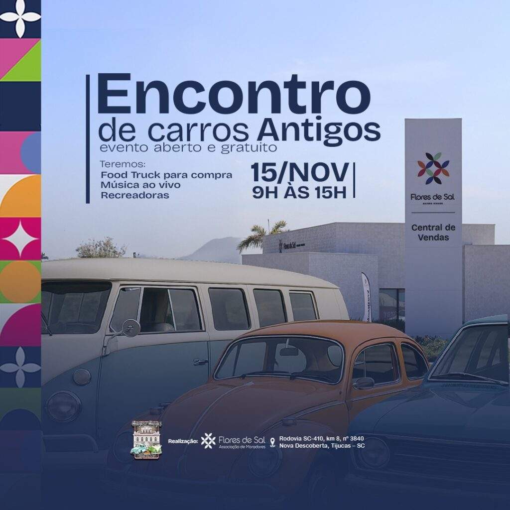 Para os entusiastas do universo do automobilismo, o Flores de Sal, maior bairro-cidade em desenvolvimento no Sul do país, em Tijucas, será palco para encontro de carros antigos, e vai transformar as suas áreas abertas em uma galeria de clássicos. A exposição, das 9h às 15h, com entrada gratuita, contará com dezenas de exemplares raros e restaurados, incluindo ícones que vão desde os robustos “muscle cars” americanos até os charmosos compactos das décadas de 60 a 90.