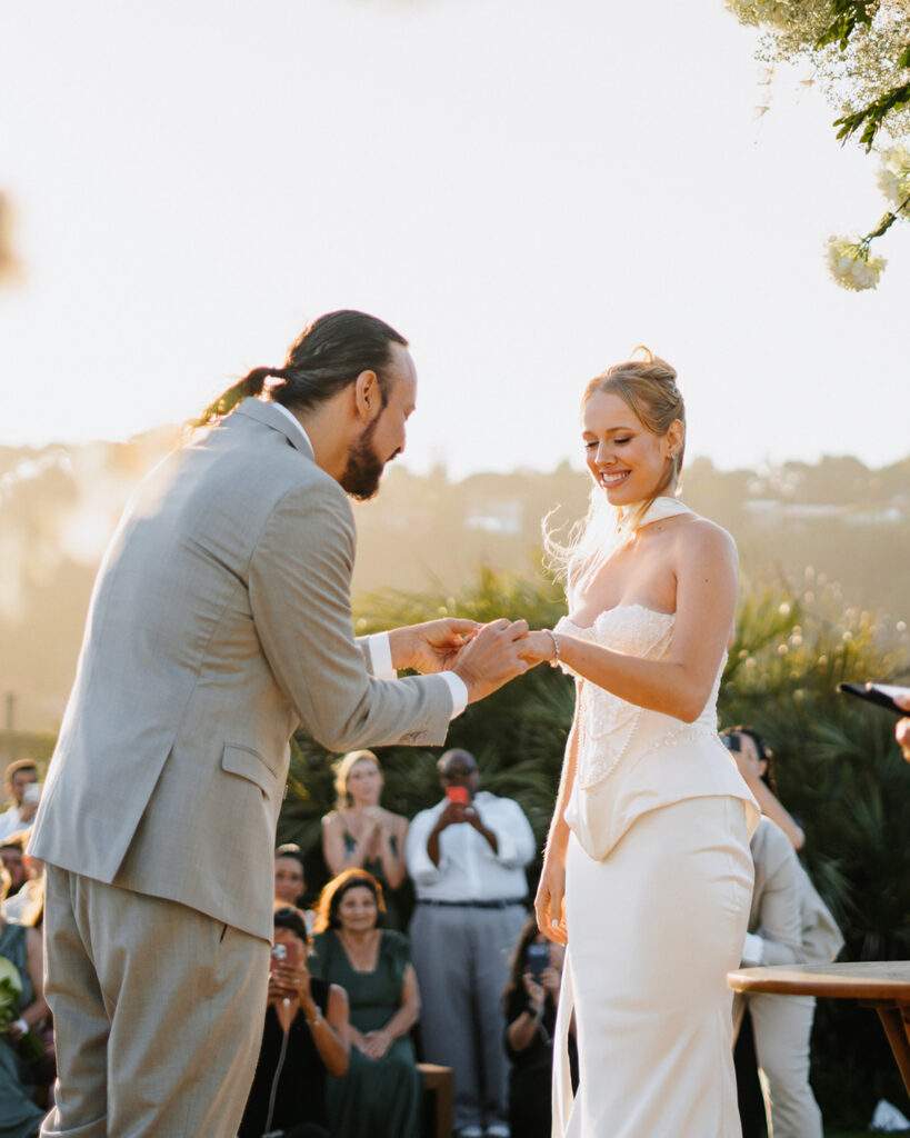 O casal está junto desde 2020. Em novembro deste ano, Gabriel pediu Gabriela em casamento durante um show de Armandinho, no Rio de Janeiro. Gabriela é natural de Garopaba, cidade vizinha de Imbituba. O “sim” aconteceu na Fazenda Verde, a cerca de 90 km de Florianópolis. Cercado por natureza preservada e com o mar à sua frente, o local foi o palco perfeito para a cerimônia, conduzida pelo ator e amigo dos noivos, Nelson Freitas.