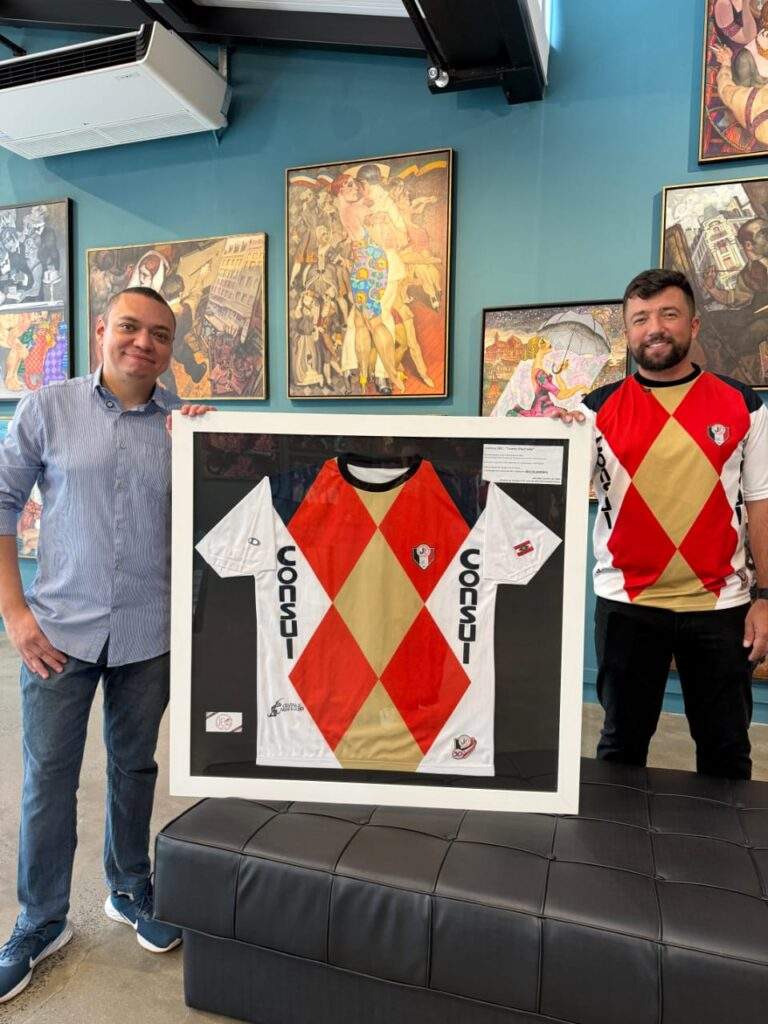O Instituto Internacional Juarez Machado recebeu, no sábado, dia 24, uma peça de grande valor histórico e simbólico para Joinville: uma camisa comemorativa do Joinville Esporte Clube (JEC), criada em 2006 pelo artista Juarez Machado em celebração aos 30 anos do clube.