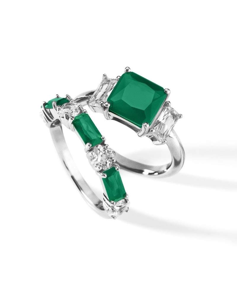GeoColors nasce da combinação entre estrutura e fluidez: traços geométricos ganham vida com a energia vibrante das pedras verdes e incolores, criando composições elegantes que equilibram personalidade e versatilidade. A coleção dialoga com um lifestyle urbano e atual, traduzindo atitude e sofisticação em joias que acompanham diferentes momentos do cotidiano.