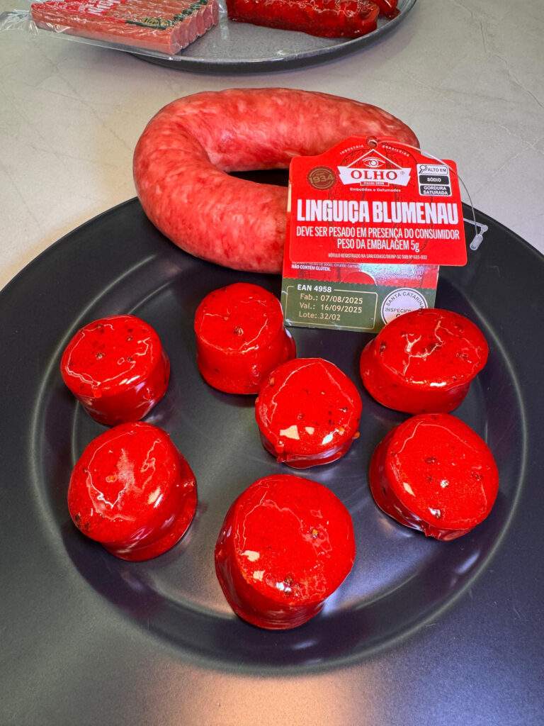 A Olho Embutidos e Defumados está em Pomerode (SC), cidade mais alemã do Brasil, e reproduz uma receita criada em 1934 por imigrantes que colonizaram a região. Além de linguiça Blumenau, a marca conta com uma linha de embutidos que inclui salsichas, calabresas, linguiças e, mais recentemente, salames. Mais informações estão disponíveis em www.embutidosolho.com.br e no Instagram @olhoembutidos.