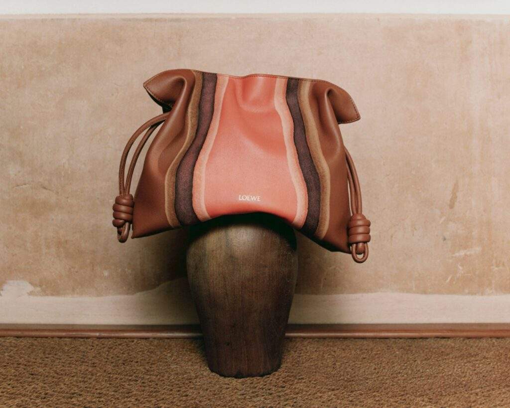 Cada peça é confeccionada por artesãos da LOEWE com técnicas complexas de marroquinaria. Entre elas, o uso do skiving, um processo de desbaste minucioso do couro que revela camadas internas, criando um efeito visual que remete às estratificações da terra e paisagens costeiras.