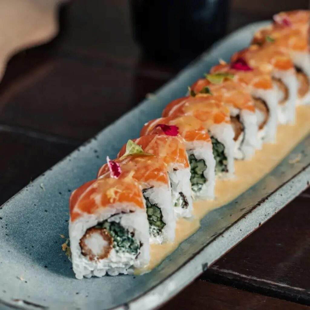 Além do ceviche Três Mares, o maracujá aparece em outras criações do cardápio do Nuu Nikkei, sempre explorado como elemento de frescor e contraste. O Tiradito Passion traz lâminas delicadas de salmão acompanhadas de um molho de physalis e maracujá, finalizado com coco crocante, combinação que equilibra acidez, doçura e textura. Já o Romi Passion aposta no contraste entre quente e frio: camarão empanado, queijo cremoso e pepino, envoltos por salmão e finalizados com o molho Nuu Passion, preparado à base de maracujá, que adiciona perfume cítrico e leveza ao conjunto.