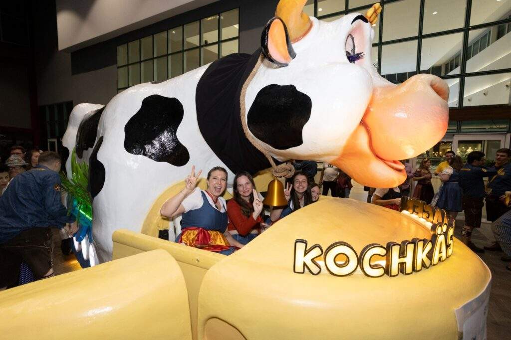 Carro alegórico do queijo cozido, nova atração da maior festa alemã das Américas, foi revelado no pátio do shopping