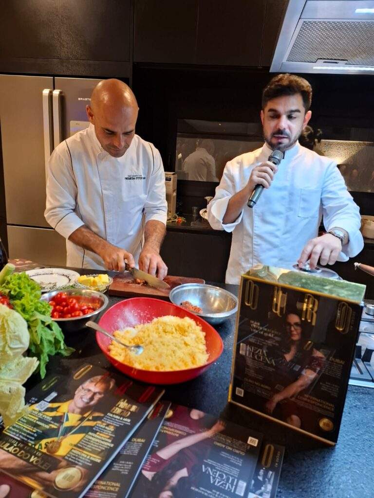 Na sequência, o Chef Shuster também participou da programação gastronômica da noite no Showcooking da Ouro – Desafio dos Chefes, apresentando uma de suas especialidades: bacalhau ao penne, prato que conquistou elogios dos convidados pela técnica e sabor marcante.