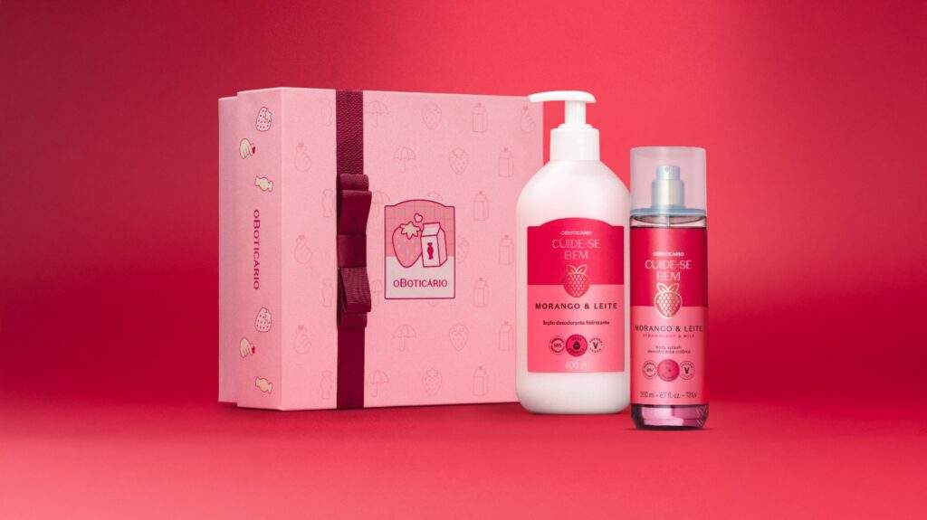 Para completar a experiência, o Boticário também lança uma box de edição limitada, disponível enquanto durarem os estoques, de Cuide-se Bem Morango e Leite, com artes exclusivas e personalizadas, inspiradas na estética dos k-dramas. A box traz a clássica Loção Desodorante Hidratante, o Body Splash da linha e uma cartela de adesivos temáticos.
