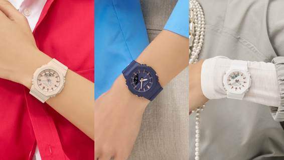 Com design compacto de 42,9 milímetros e estrutura leve, a linha GMA P2100M aposta em três lançamentos marcantes. O GMA-P2100ST-4A traz um tom de bege-rosa com brilho iridescente sutil, enquanto o GMA-P2100SG-7A exibe um branco acetinado com reflexo perolado. Já no GMA-P2100M-2A se destaca o azul-marinho e acabamento metálico suave, criando um efeito visual sofisticado. Todos os modelos exploram um design que se adapta a diferentes estilos, do casual ao elegante.