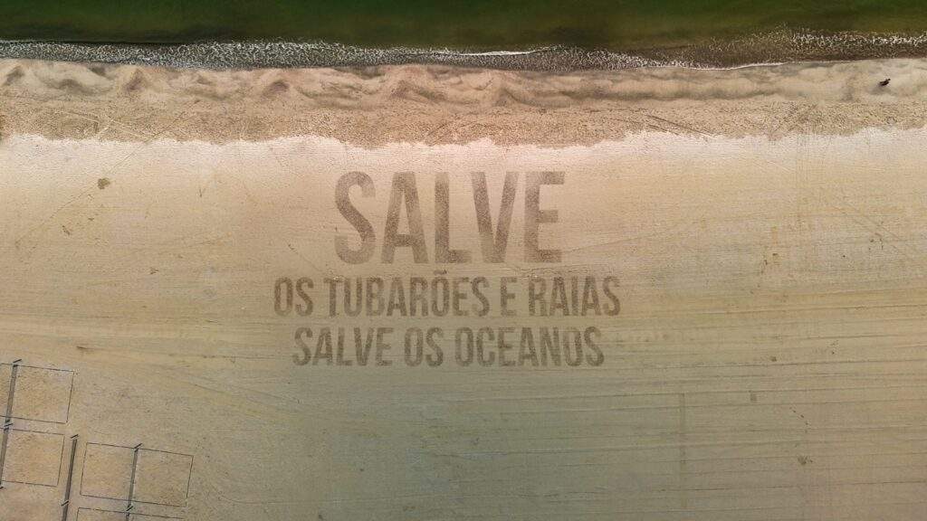Para chamar atenção à causa, uma área de 1500 m² na areia da Praia Central na cidade de Balneário Camboriú, registrou a frase “Salve os tubarões e raias, salve os oceanos”.