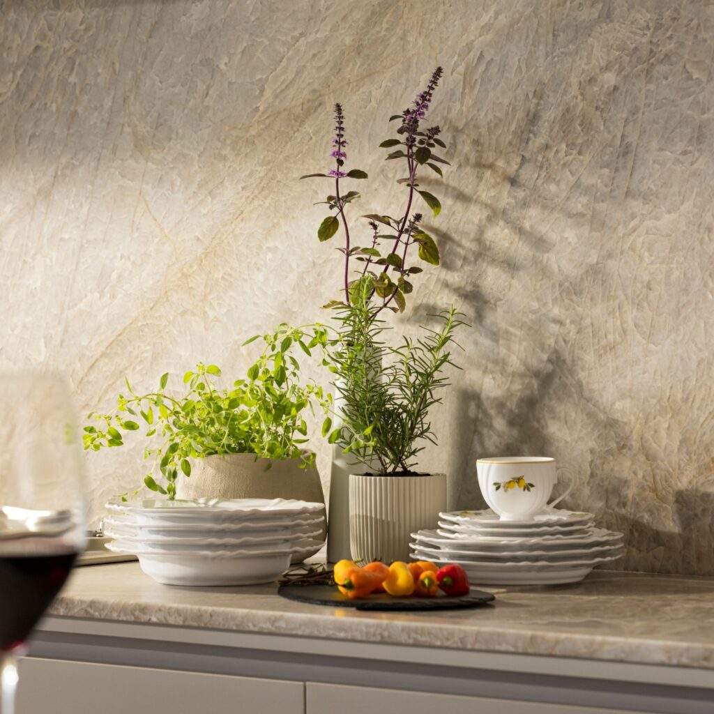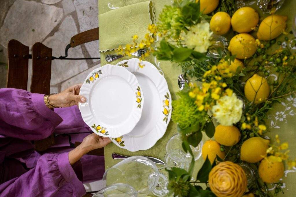 Entre as peças que traduzem o espírito da primavera está a porcelana Soleil Limoni, que traz delicados motivos de limões sicilianos em um fundo branco, evocando a atmosfera ensolarada do Mediterrâneo. A estampa vibrante e elegante é perfeita para compor mesas alegres e descomplicadas, ideais para encontros descontraídos e refeições leves nos dias mais quentes. Para deixar a mesa ainda mais alegre, a sugestão é usar limões, flores e folhas na decoração.