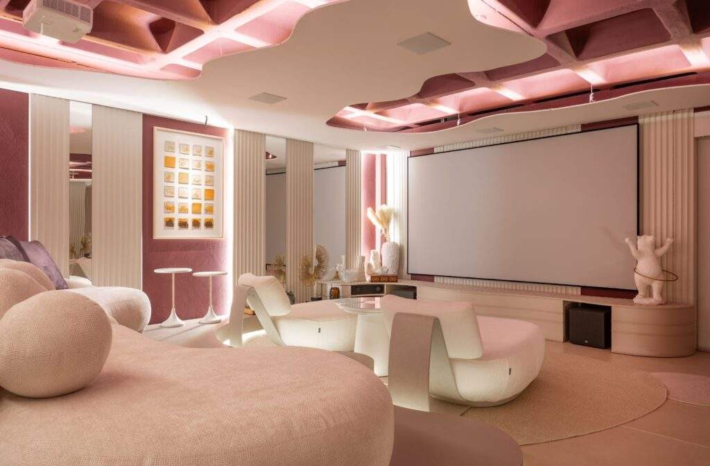 “Para o Cinema dos Sonhos, escolhi uma paleta que transmite intensidade, aconchego e sofisticação — traduzindo o equilíbrio entre tecnologia e sensibilidade que o ambiente propõe. O tom Cabernet traz profundidade, elegância e presença. Ele representa a emoção, o envolvimento e a força dos sentidos. Uma cor que toca, aquece e prepara o olhar para a experiência que se revela além da tela. Já o Luz da Pradaria entra como contraponto suave, equilibrando a atmosfera com leveza e neutralidade. Uma tonalidade delicada, quase etérea, que amplia o espaço e potencializa o conforto visual — como uma brisa silenciosa entre os elementos mais marcantes.