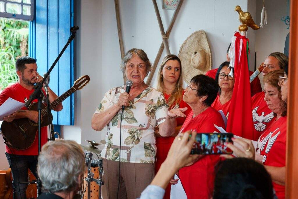 O evento teve clima de festa e emoção, embalado pelas cantorias da Festa do Divino — símbolo da religiosidade e da identidade açoriana que moldou a região desde o período colonial. As vozes dos festeiros ecoaram pelo espaço, criando uma atmosfera que conectou o presente às tradições que resistem há séculos.