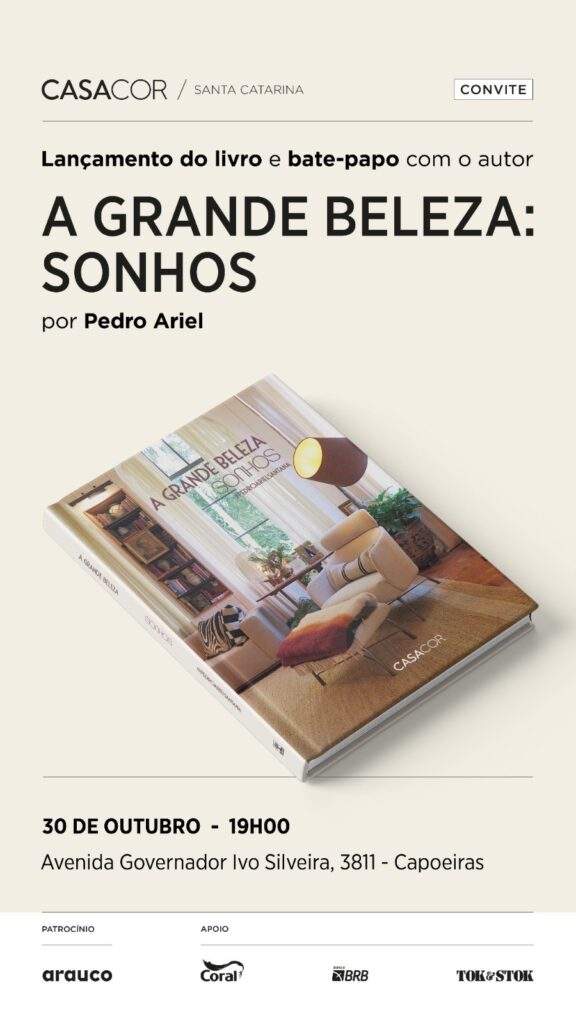 O jornalista, arquiteto e curador Pedro Ariel Santana, diretor de Conteúdo e Relacionamento da CASACOR, lança em Florianópolis, nesta quinta-feira, 30, às 19h,, o livro A Grande Beleza Sonhos, em um evento especial na CASACOR Santa Catarina 2025, sediada no ex-parque gráfico da NSC. O lançamento faz parte da programação cultural da mostra e celebra o olhar poético e sensível de um dos nomes mais importantes da comunicação em arquitetura, design e arte no Brasil.