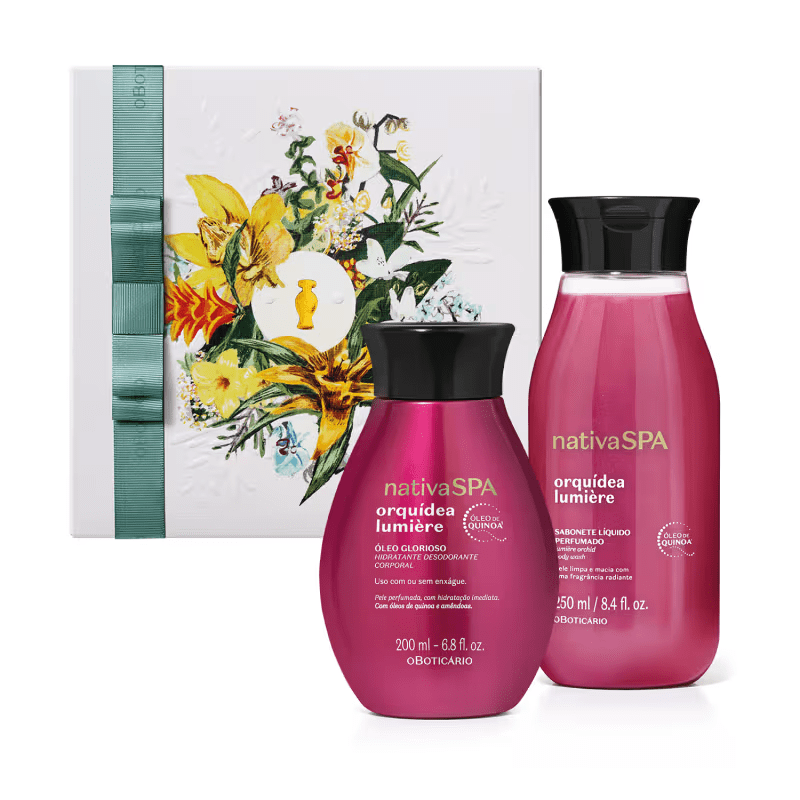 O Combo Presente Dia Das Mães Nativa SPA Orquídea Lumière traz vida nova e uma perfumação sem igual para a pele. Além de promover uma limpeza suave e super agradável, ainda deixa o seu corpo macio e com uma luminosidade maravilhosa por até 10 horas. É uma ótima opção para compor aquele presente para dar para mãe que valoriza produtos sustentáveis e fórmulas livres de parabenos, garantindo um ritual de autocuidado completo.