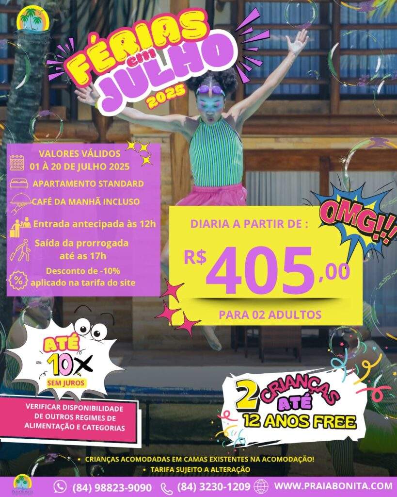 O mês mais aguardado pelas famílias chegou — e o Praia Bonita Resort, um verdadeiro refúgio entre a Lagoa de Arituba e o mar calmo de Camurupim, está pronto para transformar suas férias de julho em uma experiência inesquecível.