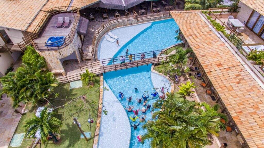 Com uma estrutura encantadora e pensada para todas as idades, o resort convida seus hóspedes a relaxarem, se divertirem e criarem memórias únicas. Nossa piscina de 180 metros de pura refrescância, cercada por coqueiros e espreguiçadeiras, é o cenário perfeito para dias de sol e descontração.