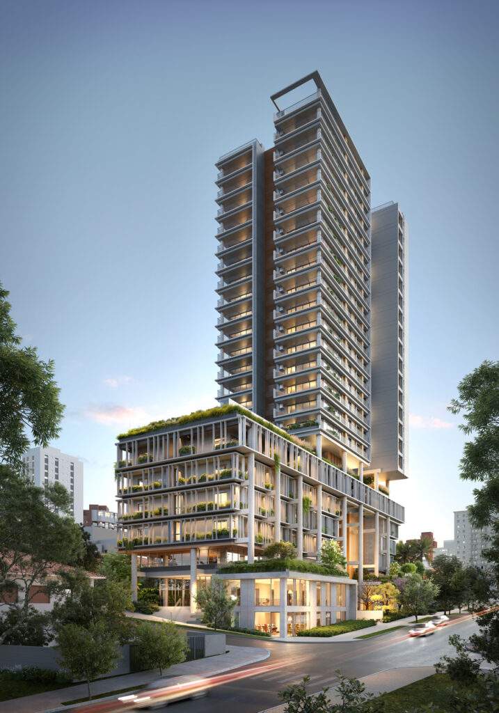 Distribuído em um terreno de mais de 2 mil m², o empreendimento de torre única, apresenta 16 andares em sua parte residencial, que é dividida entre apartamentos amplos, com hall privativo e ventilação natural, de 124m² e 165m², além do duplex com até 222 m², e os studios de 26m² e 49m², voltados para morar ou investir, com ambientes funcionais, onde o acesso e as áreas de lazer são independentes. Multiuso, conta ainda com quatro andares corporativos e um térreo com lojas, que contribuem para o dinamismo urbano, criando uma fachada ativa que valoriza a conexão com o bairro.