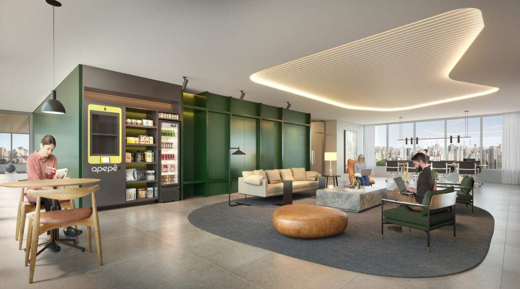 Para os residenciais, as áreas comuns e o lazer elevado contemplam coworking com minimercado exclusivo, piscina com raia de 25 metros, brinquedoteca assinada pelo Erê Lab, fitness indoor e outdoor, além de infraestrutura para carregadores de carro elétrico, sistema de reuso de água e lockers inteligentes para entregas. Os studios, por sua vez, contam com lobby, bicicletário, lavanderia, lounge, fitness, private offices, coworking, terraço coworking e pet place. Tudo isso conectado por meio do Apepê, o app que centraliza serviços, reservas e a comunicação no condomínio.
