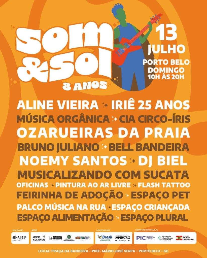 Neste mês de junho o Som&Sol alcança um grande marco em sua história. Promovendo a cultura e a economia criativa, o projeto chega a oito anos de atividades e prepara uma série de comemorações que prometem muita arte para o público de várias cidades. Serão oito edições especiais nos próximos meses, com nova estrutura e ainda mais atrações. A primeira delas é a de número 80 do projeto e ocorre na Praça da Bandeira, em Porto Belo, no domingo (13), das 10h às 20h. O evento, como sempre, é gratuito.