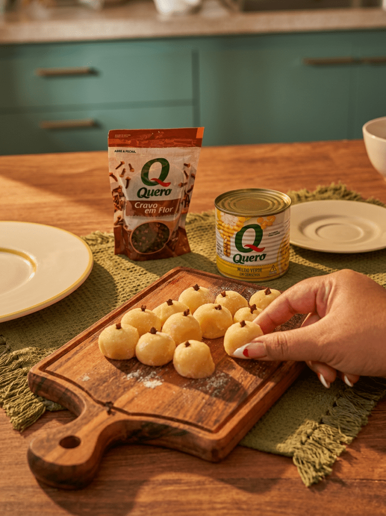 Para o fechamento da refeição, a dica é brincar com os contrastes. “Eu gosto muito de explorar o conforto e a surpresa na sobremesa. O chocolate já é a estrela da data, mas quando trazemos a cremosidade e o sabor nostálgico do milho verde para dentro de um ovo de colher, ou mesmo no brigadeiro enrolado, a gente quebra o óbvio. É uma combinação muito brasileira, que abraça o paladar e deixa o cardápio com muita personalidade”, completa a especialista.