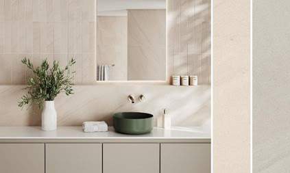 Os tons Beige e Gris da Série Boulevard ganham o revestimento de parede no formato 7,7 x 30,5 cm, bem como opções nos formatos 20 x 20 cm e 90 x 90 cm | Foto: Divulgação Roca Cerámica