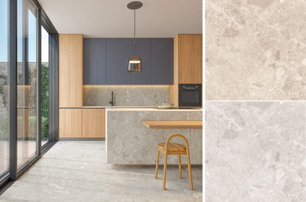 A clássica rocha italiana Ceppo di Gre, muito apreciada por sua capacidade de inspirar os ambientes, ganha uma nova interpretação em nuances de Bege, conhecida por sua suavidade e atmosfera acolhedora para aplicação em pisos e paredes de ambientes internos e externos. Além dessas novidades, todos os Superformatos com acabamento Mate da série passam a receber tratamento com a tecnologia Soft Tec.