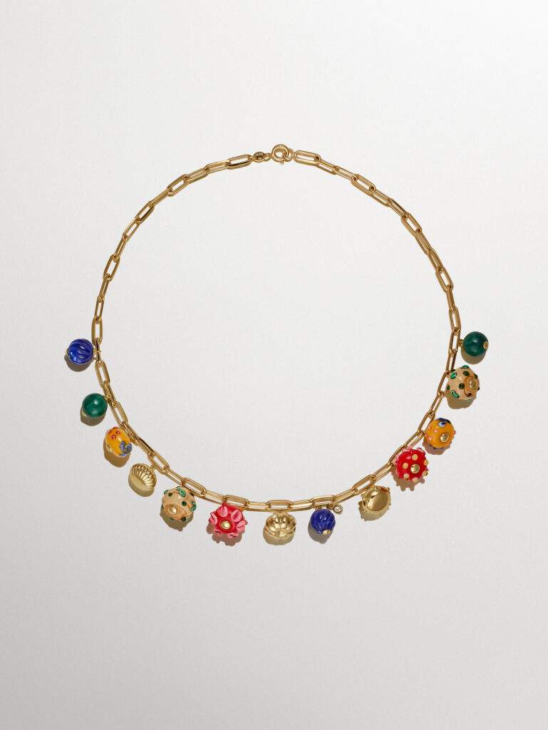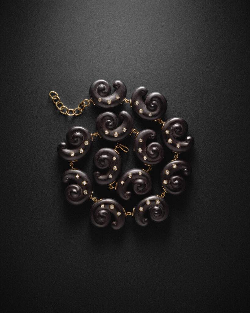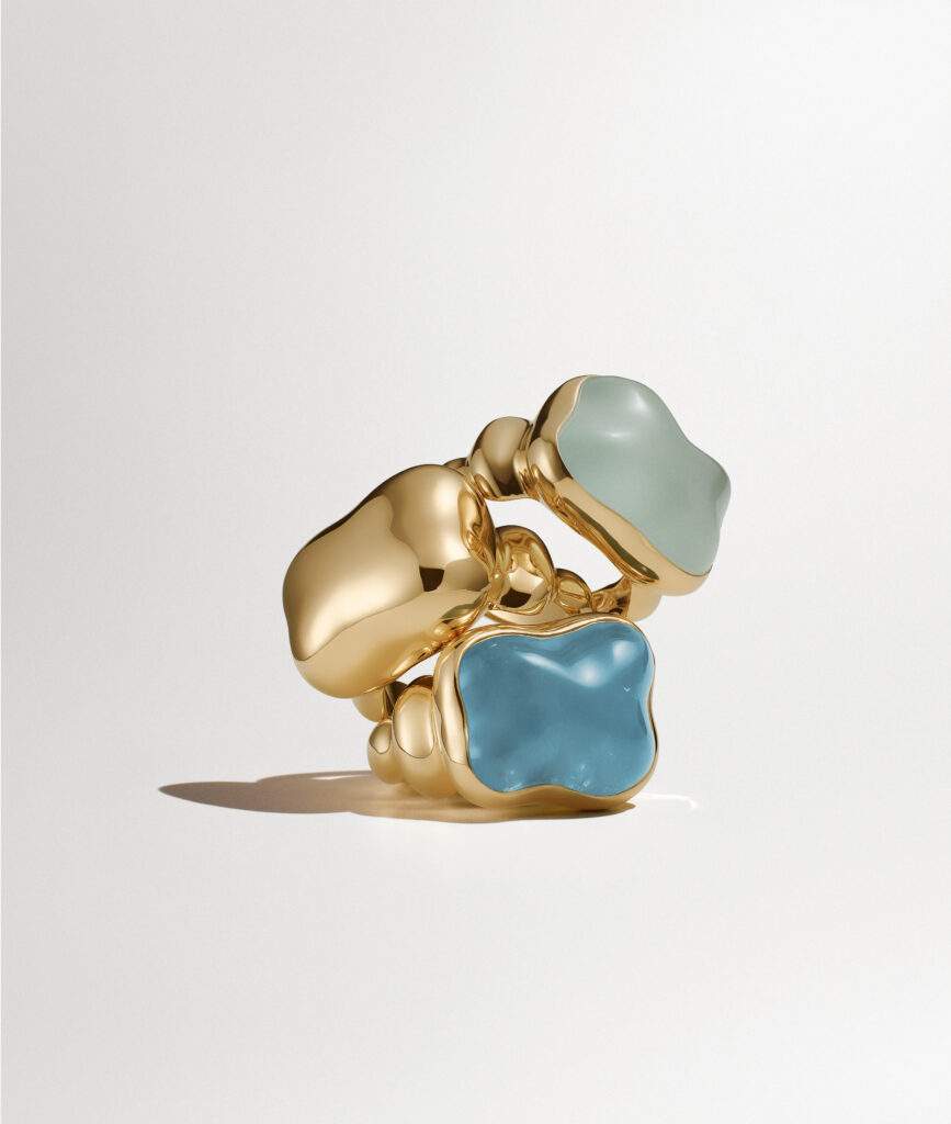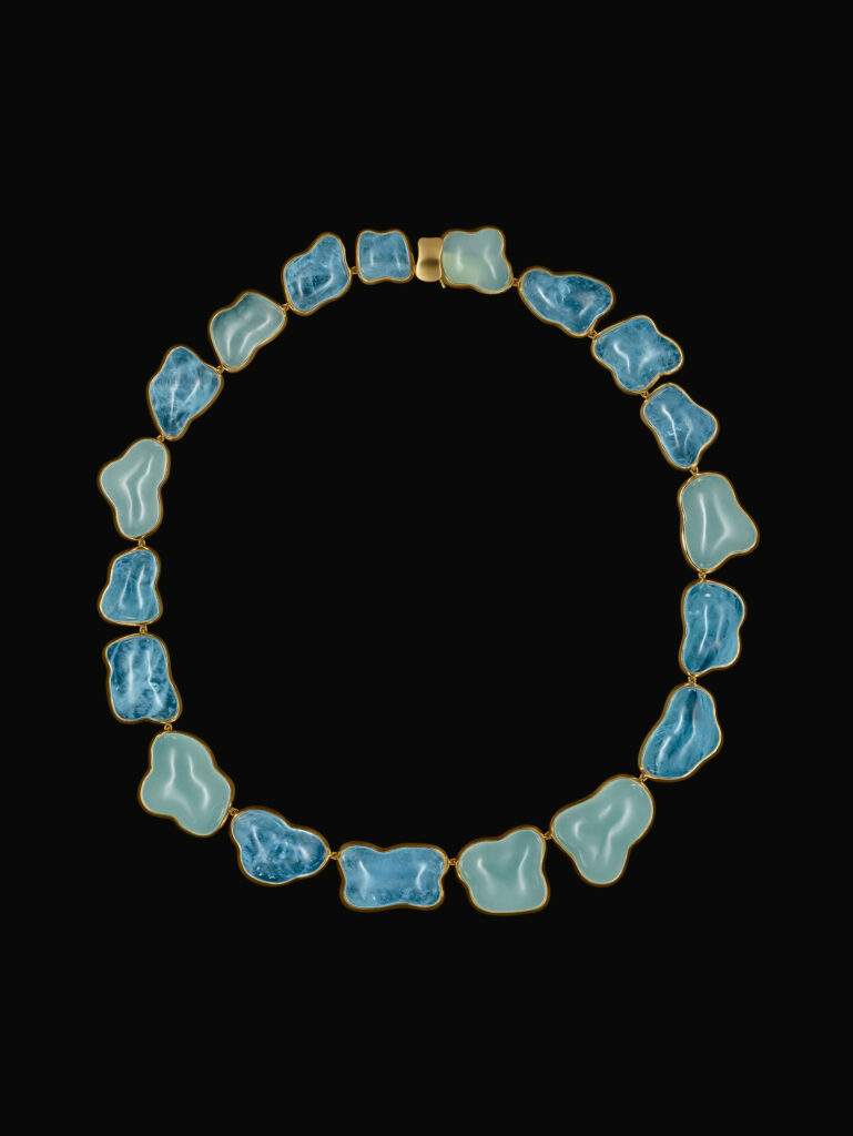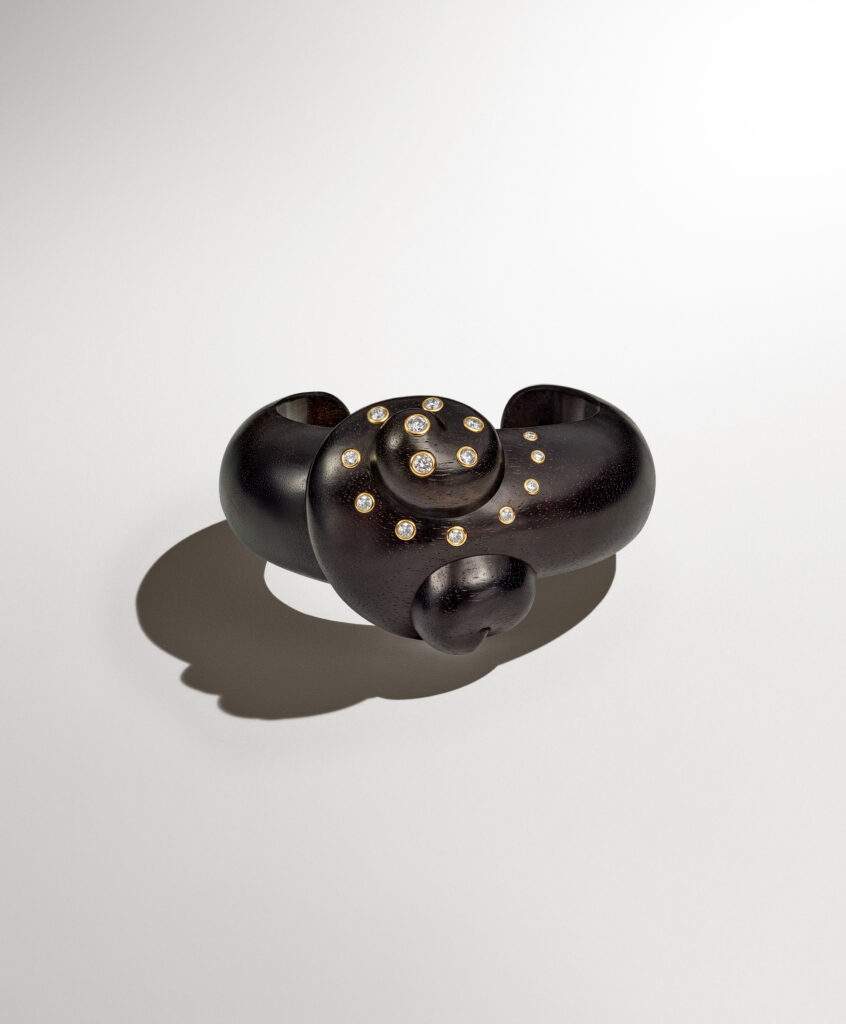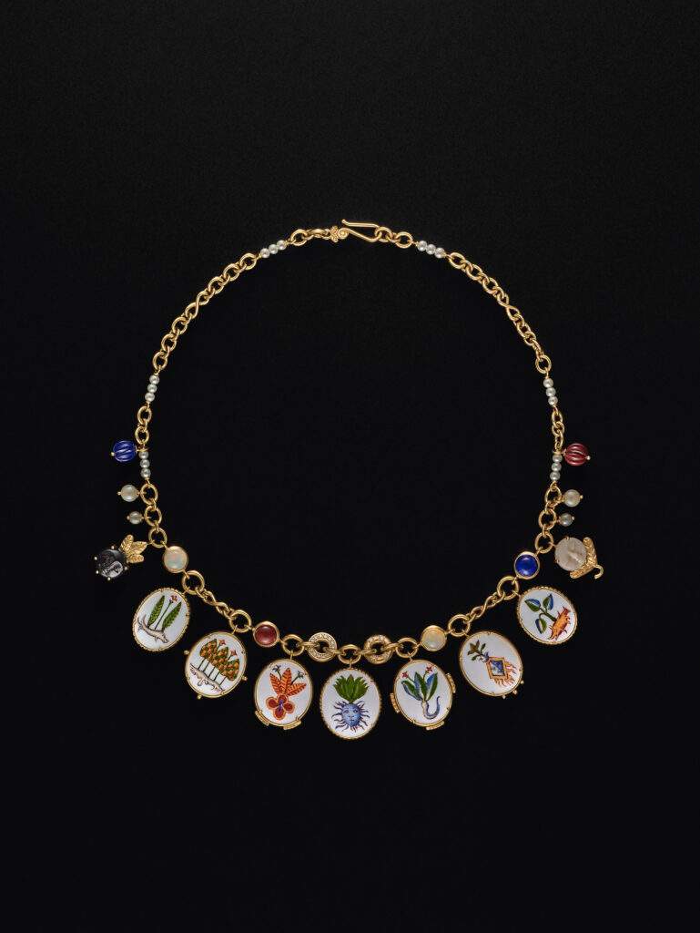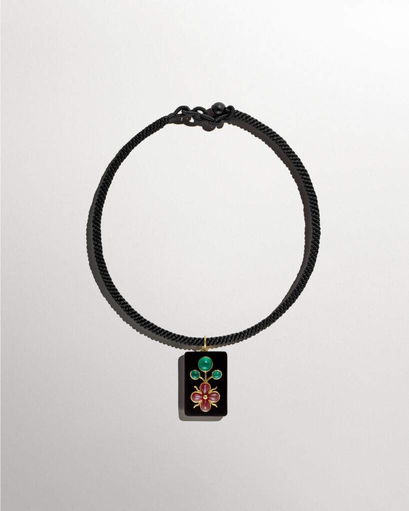 No campo material, a marca amplia seu repertório ao explorar novas combinações e técnicas. Águas-marinhas esculpidas evocam formas translúcidas, vidros de Murano trazem leveza e luminosidade, enquanto madeiras entalhadas acrescentam densidade e textura orgânica. Pela primeira vez, a SAUER incorpora porcelana pintada à mão em suas criações. O conjunto é finalizado com gemas como esmeraldas, rubis, safiras e diamantes, reforçando a ideia de uma botânica rara e imaginada.