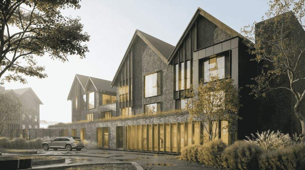 O empreendimento inaugura na região a categoria “Cidade Natureza”, conceito que orienta todo o masterplan. Nesse modelo, a natureza deixa de ser apenas cenário e passa a ser estrutura, linguagem e identidade do lugar. O relevo, os bosques, os campos e os cursos d’água determinam a implantação dos espaços urbanos, assegurando uma relação equilibrada entre infraestrutura, paisagem e experiência humana. O projeto urbanístico foi desenvolvido pelo escritório Jaime Lerner.