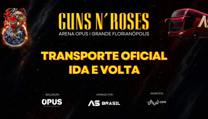 Para oferecer ainda mais comodidade e segurança ao público, a Opus Entretenimento firmou parceria com a AS Brasil para disponibilizar o transporte oficial do aguardado show de estreia da nova turnê do Guns N’ Roses no Brasil, que acontece no dia 21 de outubro, na área externa da Arena Opus, em São Jose (Grande Florianópolis).