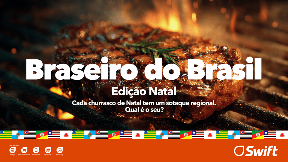 Se a Swift fosse em busca de experts, de Norte a Sul do Brasil, para mostrar que o Natal também é época de churrasco, e a ocasião pede as melhores carnes da Swift na mesa dos brasileiros de diferentes regiões. É isso que faremos com o ‘Braseiro do Brasil’, celebrando a diversidade da nossa paixão nacional e garantindo que, da picanha Gran Reserva à porchetta mineira, a qualidade Swift seja o ponto de encontro das famílias neste fim de ano“, explica Mario Casanova, gerente executivo de marketing e e-commerce da Swift.