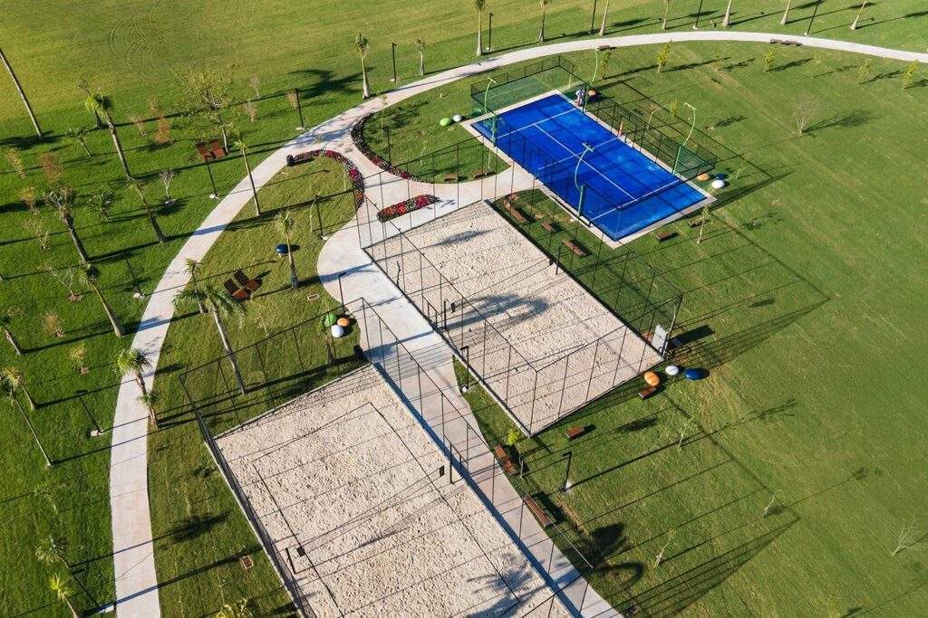 O projeto, um dos maiores do país com 4,6 milhões de m² de área ao todo, visa atrair o perfil de morador que migra de grandes centros em busca de infraestrutura de “wellness” integrada à moradia, sustentabilidade e convivência. A quadra faz parte das atrações do Parque das Flores, com 70 mil m², um lago de 25 mil m², pista de caminhada de 2 km, amplo gramado, áreas para crianças e pet friendly e duas quadras de areia. Para uso das quadras, é necessário agendar pelo telefone (47) 9131-4740. Com acesso gratuito, o parque funciona de domingo a domingo, das 8h até as 22h.
