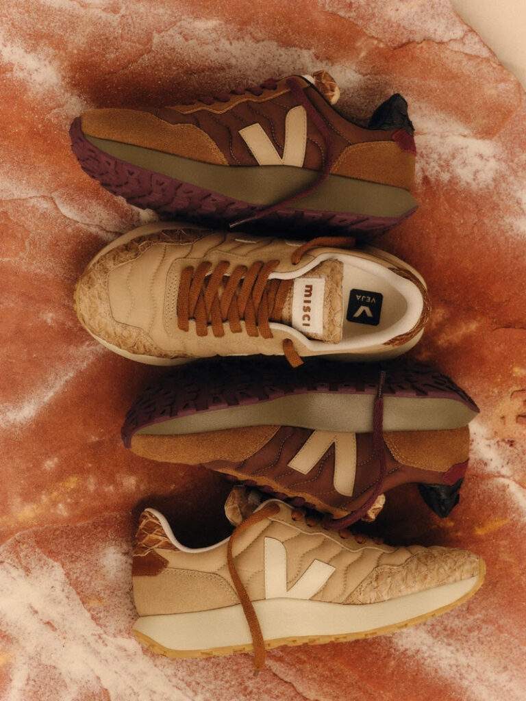 Há 20 anos, a VEJA tem o compromisso de construir uma indústria da moda mais justa, utilizando matérias-primas ecológicas oriundas de comunidades produtoras em diferentes regiões do Brasil. Já a MISCI, marca brasileira de moda contemporânea reconhecida por sua linguagem autoral, constrói suas criações a partir da cultura e do território como motores criativos.